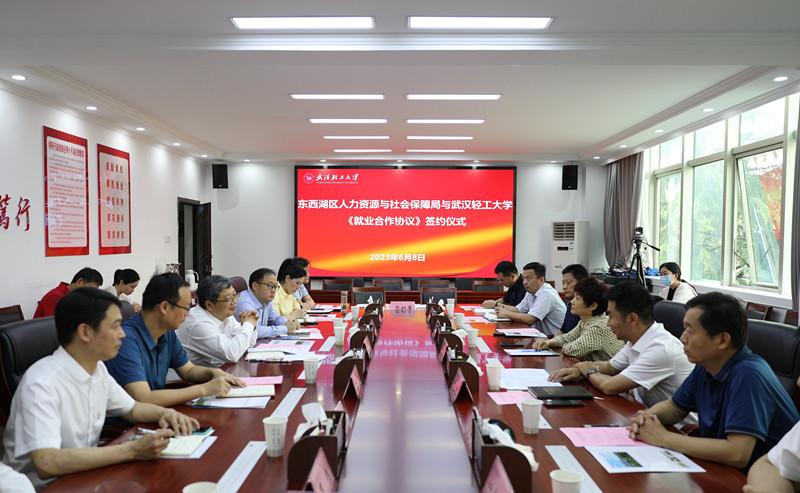 招聘會前,學校與東西湖區人力資源與社會保障局《就業合作協議》簽約儀式在明德樓(行政樓)1號會議室舉行。王立兵、肖建紅、盧永楨,以及區委組織部、區人社局、區衛健局負責人,學校相關職能部門負責人共同出席了簽約儀式。